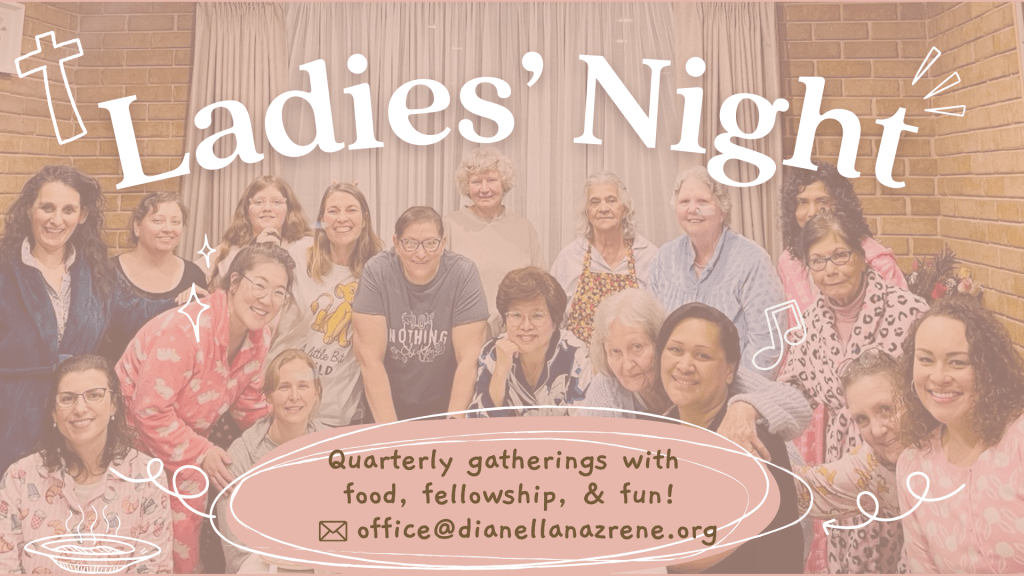 Bring a plate to share, dress for the theme (eg 80’s, pajamas, Bollywood, etc.) and come ready to eat, sing, talk, play games, pray and encourage one another.